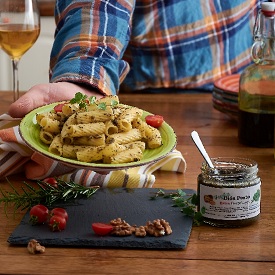 Dió és bazsalikom tökéletes kombinációja egy kis parmezánnal, fokhagymával és extra szűz olíva olajjal, teljes harmóniában.