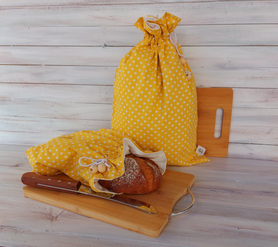 Tisztítása nagyon egyszerű: kifordítva nedves ruhával könnyedén kitörölhető. Szükség esetén mosógépben, öblítő nélkül (vagy öblítő helyett ecetet használva) akár magasabb hőfokon is mosható. Vasaláskor a PUL anyagot kihúzva csak a pamutvászon anyagot vasald. A kenyeres zsák tetejét úgy alakítottam ki, hogy zsinórral szorosan összehúzható legyen annyira, hogy ne maradjon lyuk a zsák tetején. Ezzel is segítve, hogy kevésbé száradjon ki a benne levő pékárú.